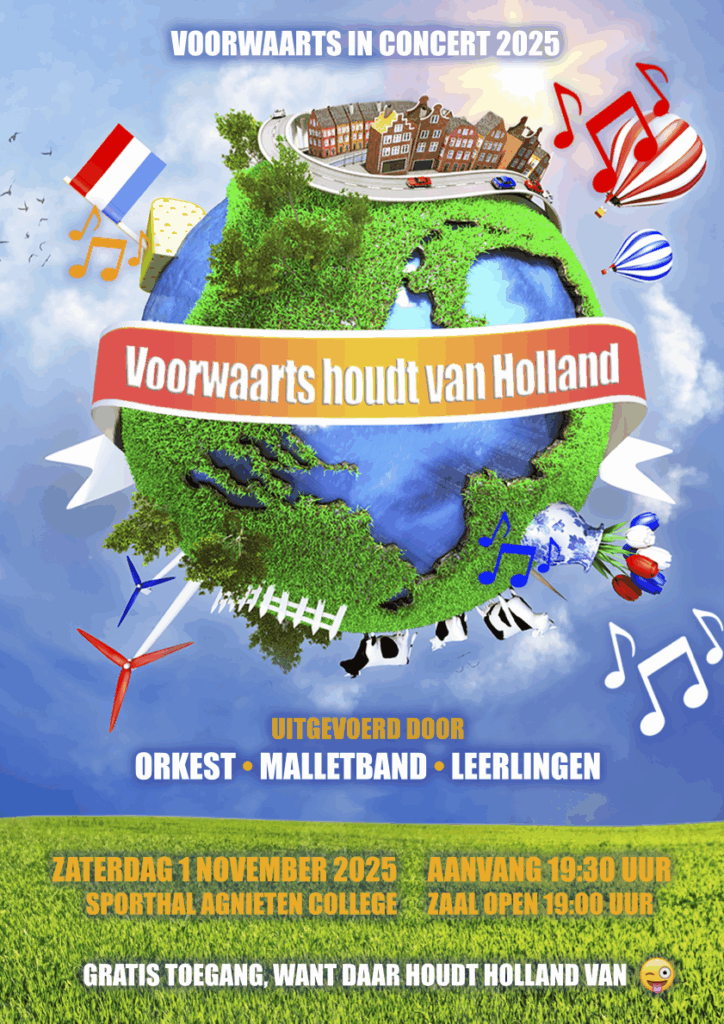 Op vrijdag 1 november neemt Muziekvereniging Voorwaarts je mee door ons eigen Nederland! Onder het thema “Voorwaarts houdt van Holland” brengen het orkest, de malletband en onze leerlingen een avond vol herkenbare Hollandse klanken. Van bekende meezingers tot prachtige werken van Nederlandse artiesten en arrangeurs, een programma vol gezelligheid, herkenning en muzikaliteit! Locatie: […]